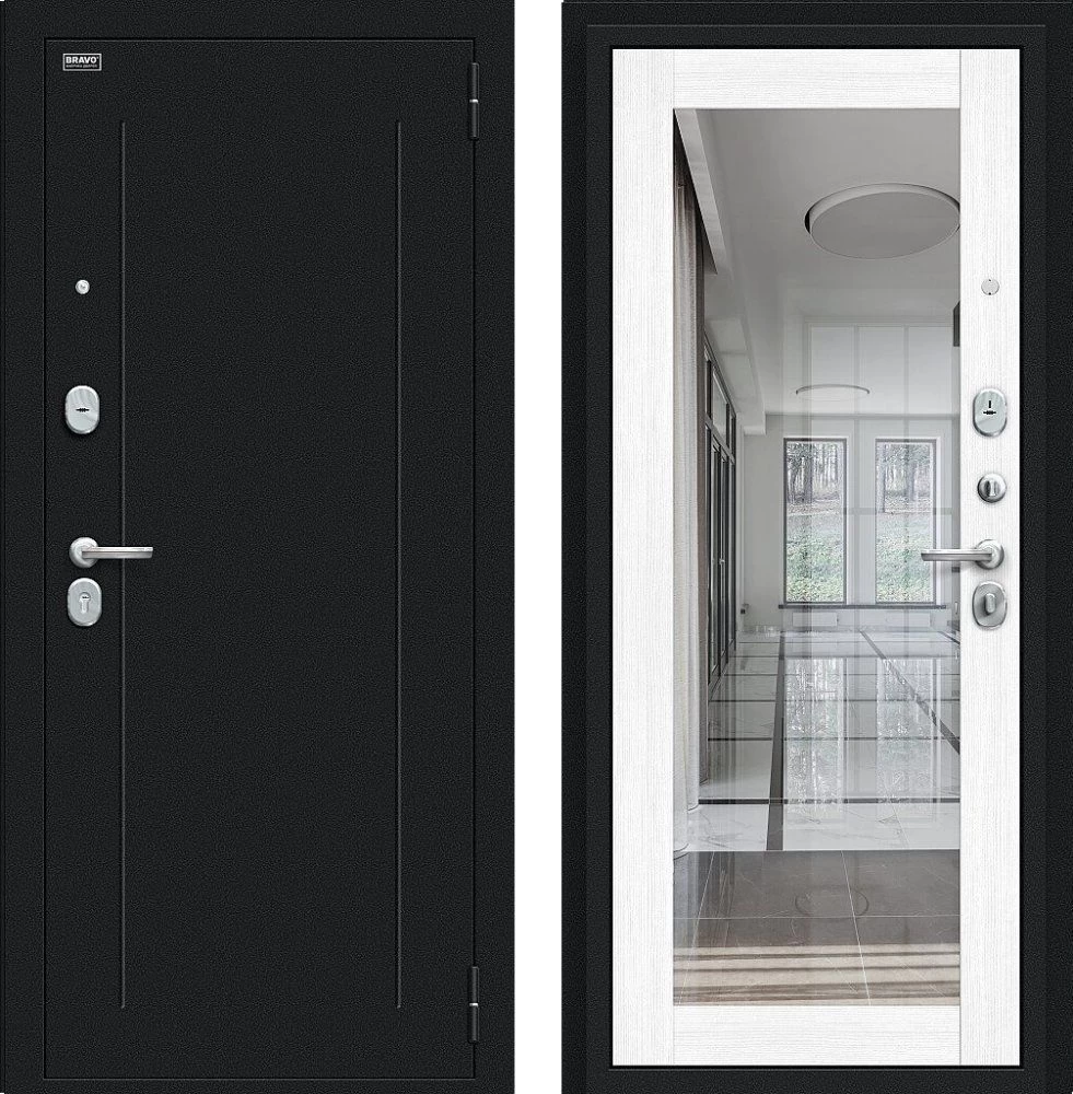 Надежная входная Дверь Браво Флэш Букле черное/Snow Melinga премиум класса по цене 32 457 руб. Большая толщина стали защитит от проникновения в ваш дом, квартиру или коттедж. Используется очень качественная фурнитура: замки, цилиндры, ручки, защелки. Покрытие и отделка двери изготовлено под внимательным контролем производителя. Дверь имеет долгий срок службы и гарантию.