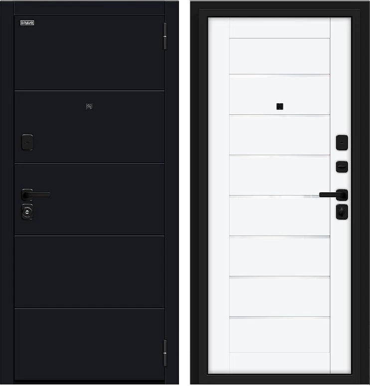 Надежная входная Дверь Браво Прайм/SBlack-Black Shell/White Silk премиум класса по цене 39 807 руб. Большая толщина стали защитит от проникновения в ваш дом, квартиру или коттедж. Используется очень качественная фурнитура: замки, цилиндры, ручки, защелки. Покрытие и отделка двери изготовлено под внимательным контролем производителя. Дверь имеет долгий срок службы и гарантию.
