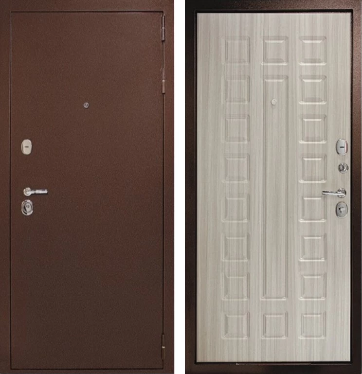 Надежная входная Дверь Рубикон 1 Медь Сандал белый премиум класса по цене 32 327 руб. Большая толщина стали защитит от проникновения в ваш дом, квартиру или коттедж. Используется очень качественная фурнитура: замки, цилиндры, ручки, защелки. Покрытие и отделка двери изготовлено под внимательным контролем производителя. Дверь имеет долгий срок службы и гарантию.